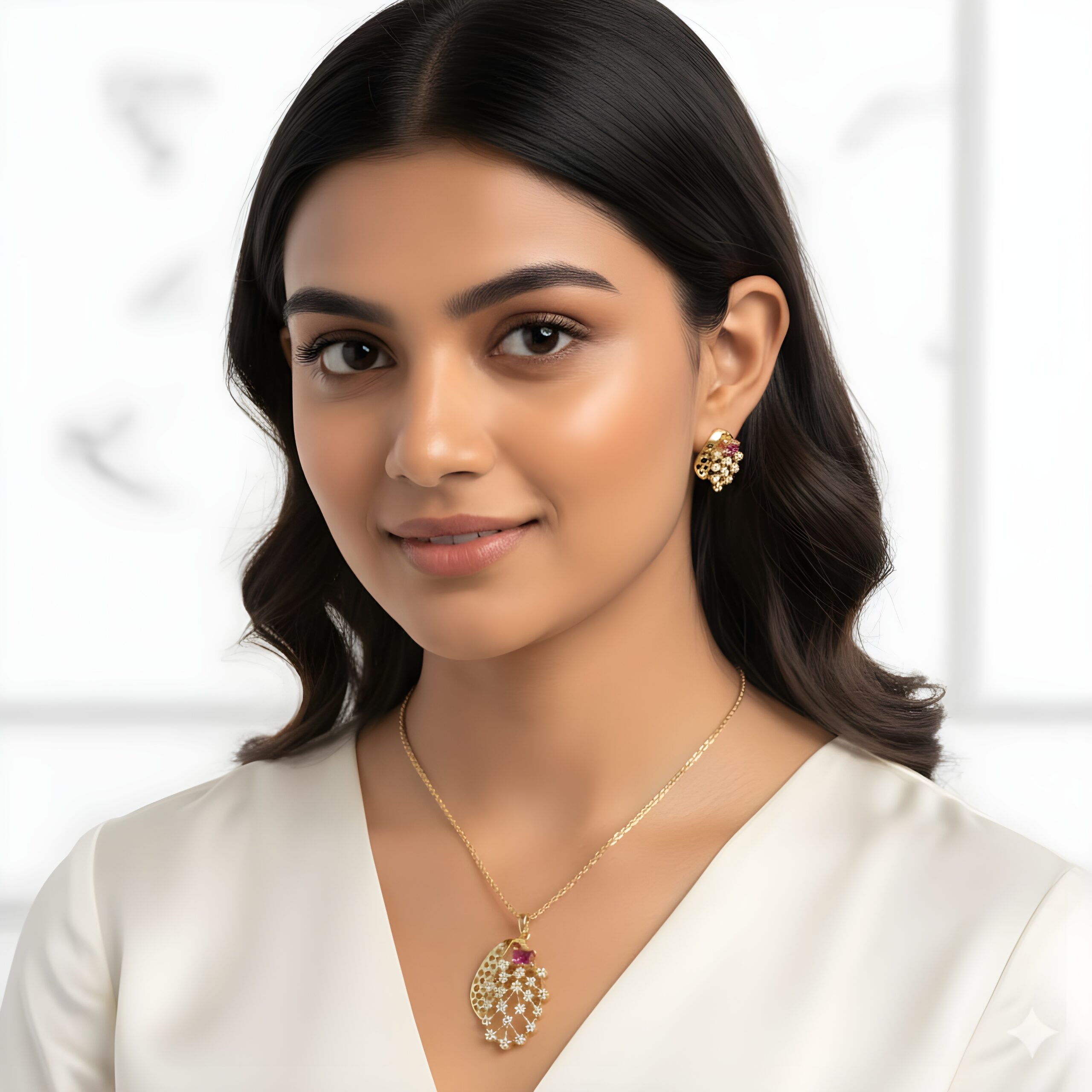 • Matching Stud Earrings: The set includes perfectly coordinated stud earrings that echo the unique design and detailing of the pendant, ensuring a harmonious look.