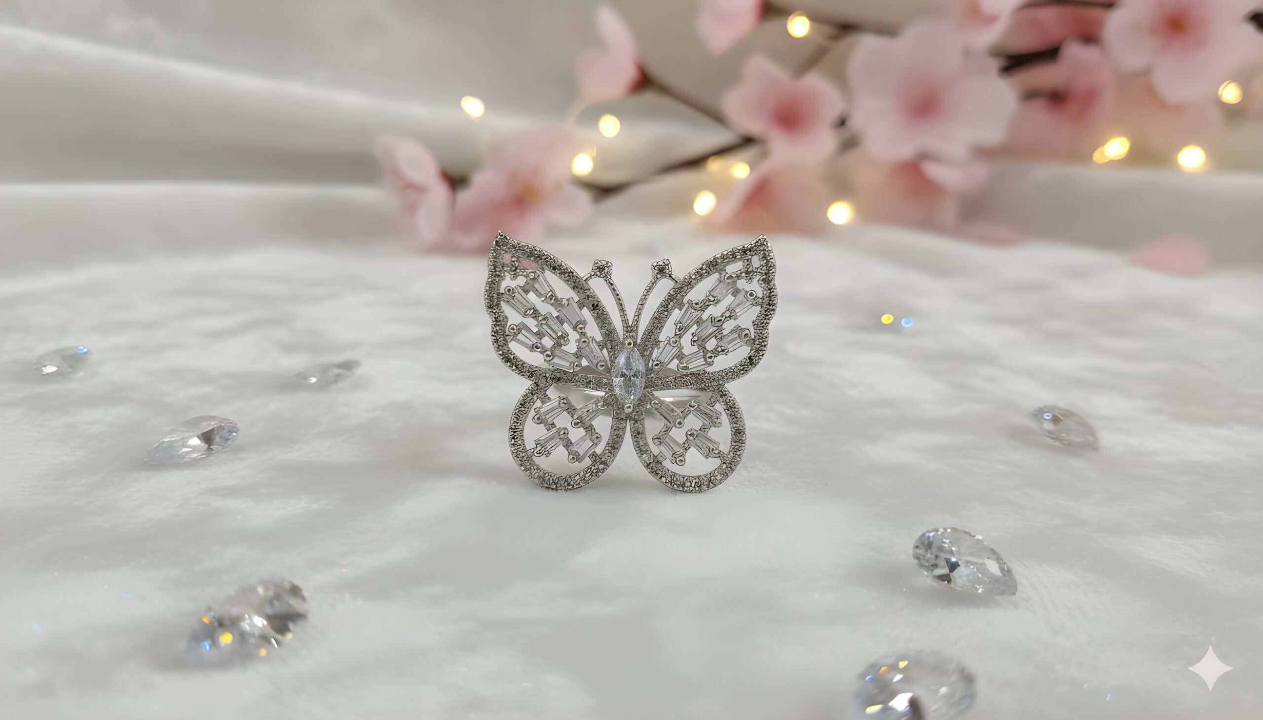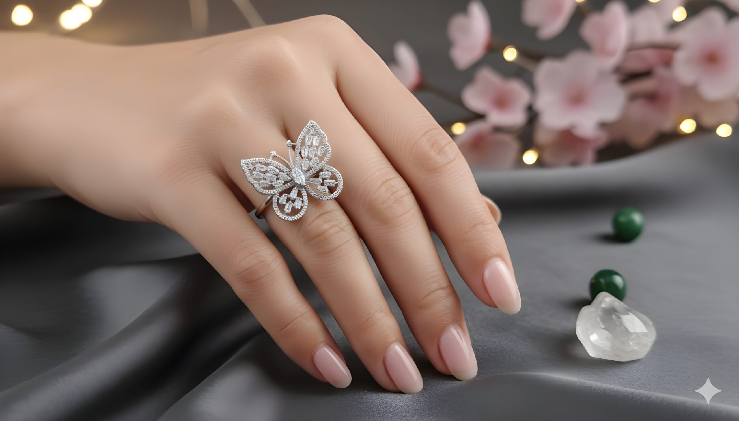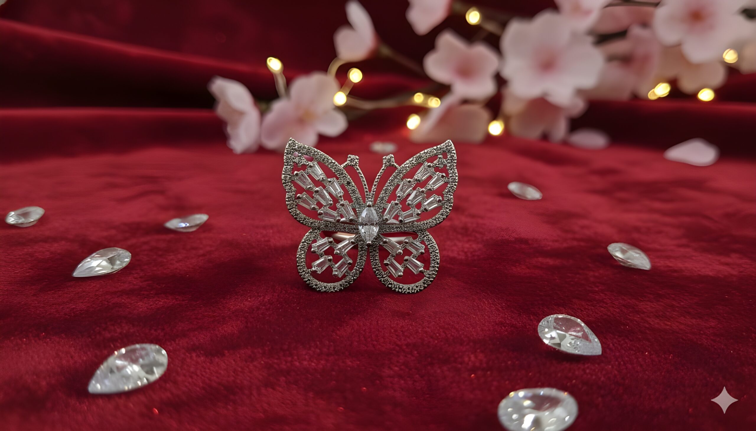 Experience the meticulous artistry and premium components that define the Diamond Flutter Adjustable Ring: