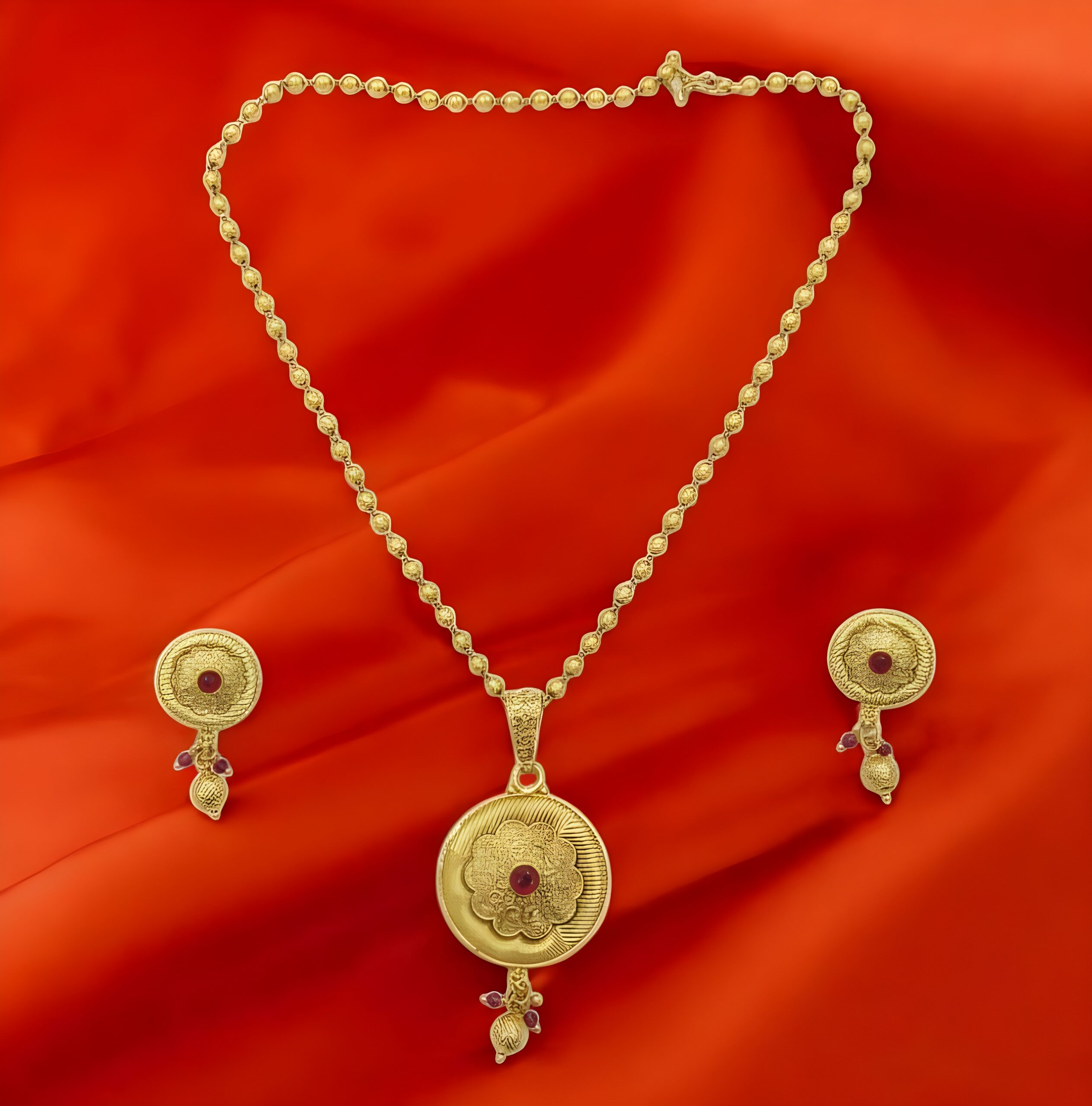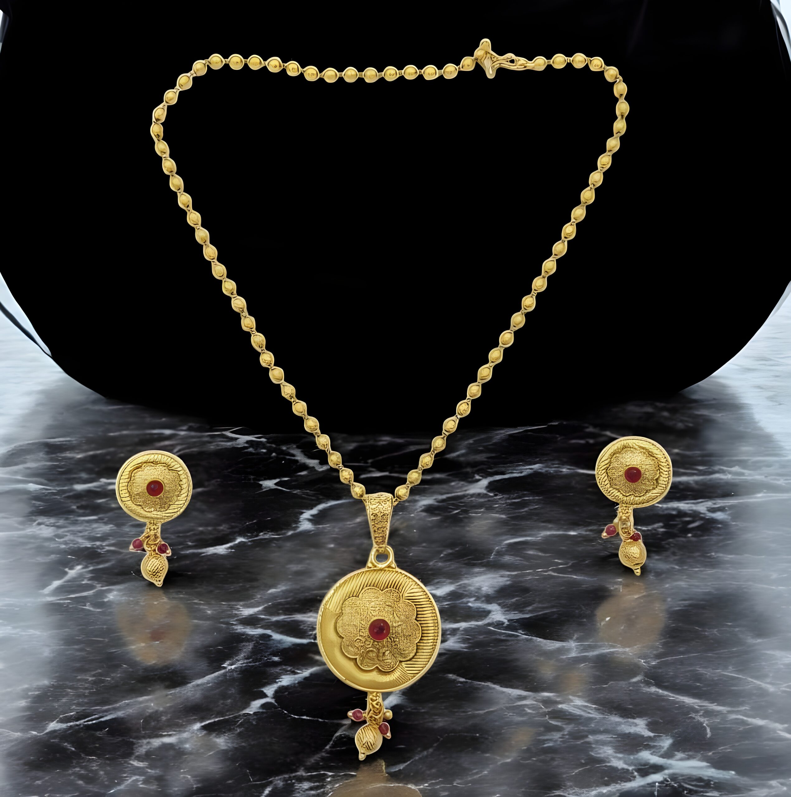 Experience the meticulous artistry and premium components that define the Golden Bloom Pendant Set: