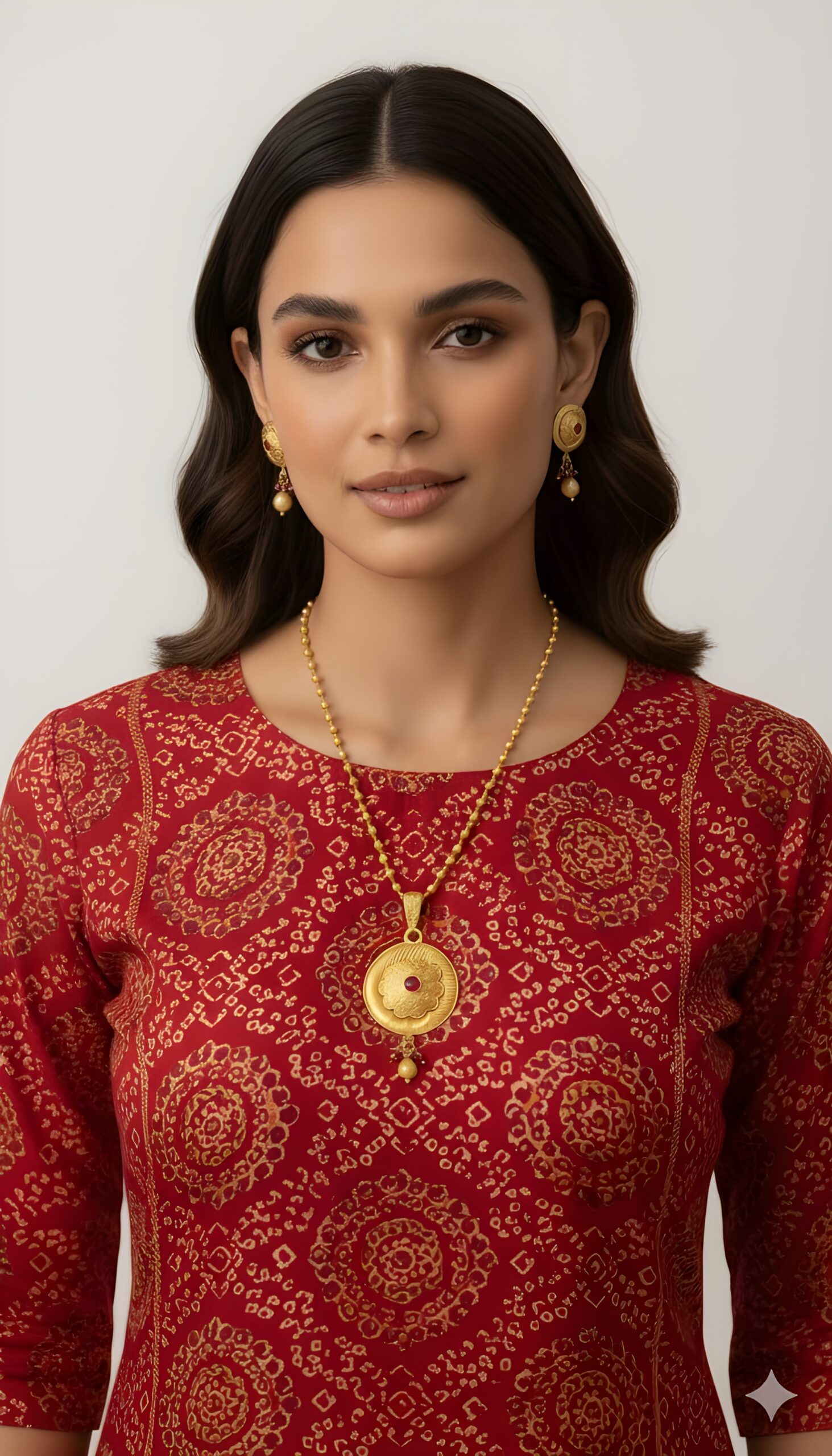 Discover the perfect fit and elegant proportions of your Kazaara Golden Bloom Pendant Set: