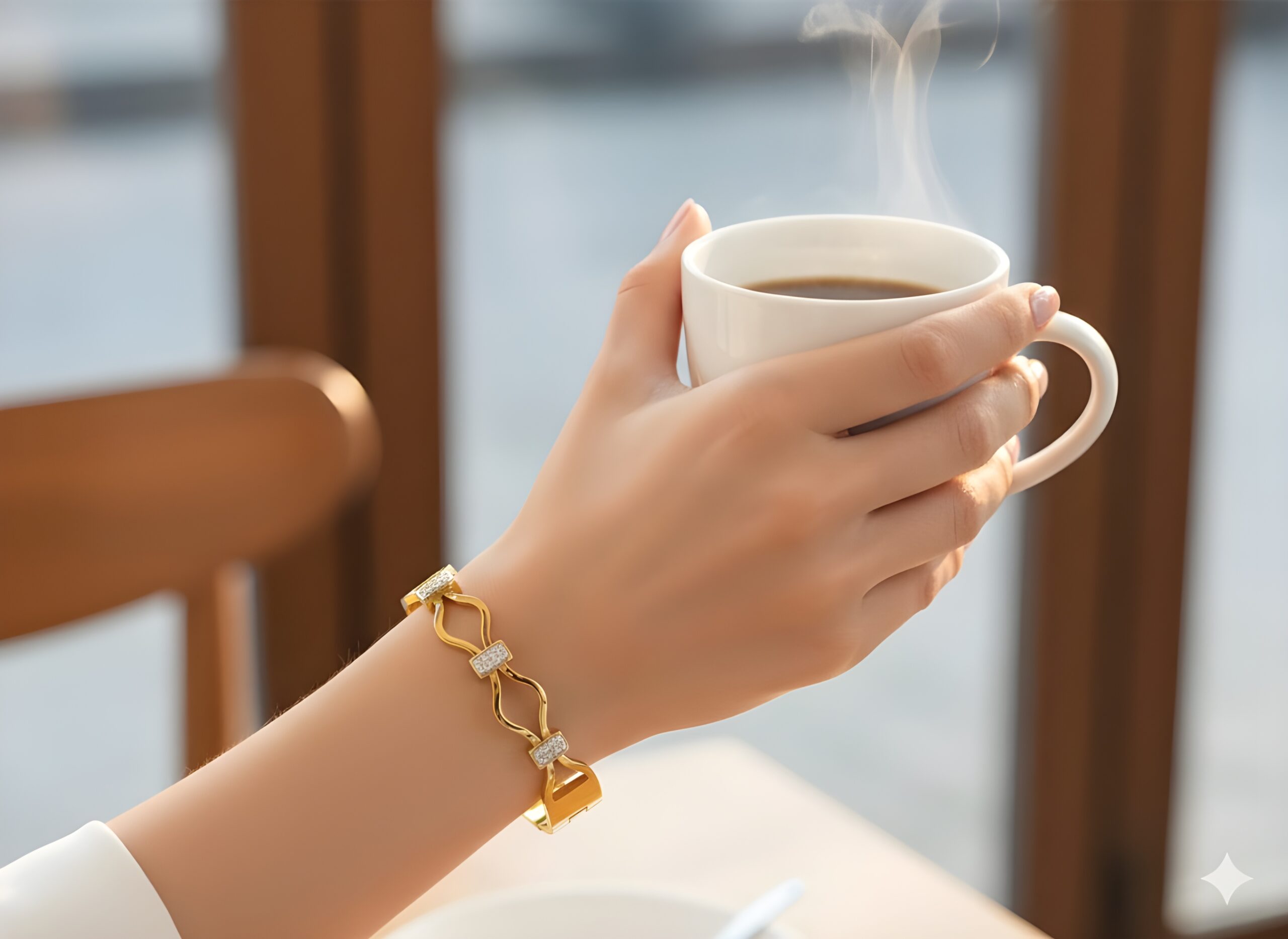 Discover the perfect fit and elegant proportions of your Kazaara Golden Wave AD Bracelet: