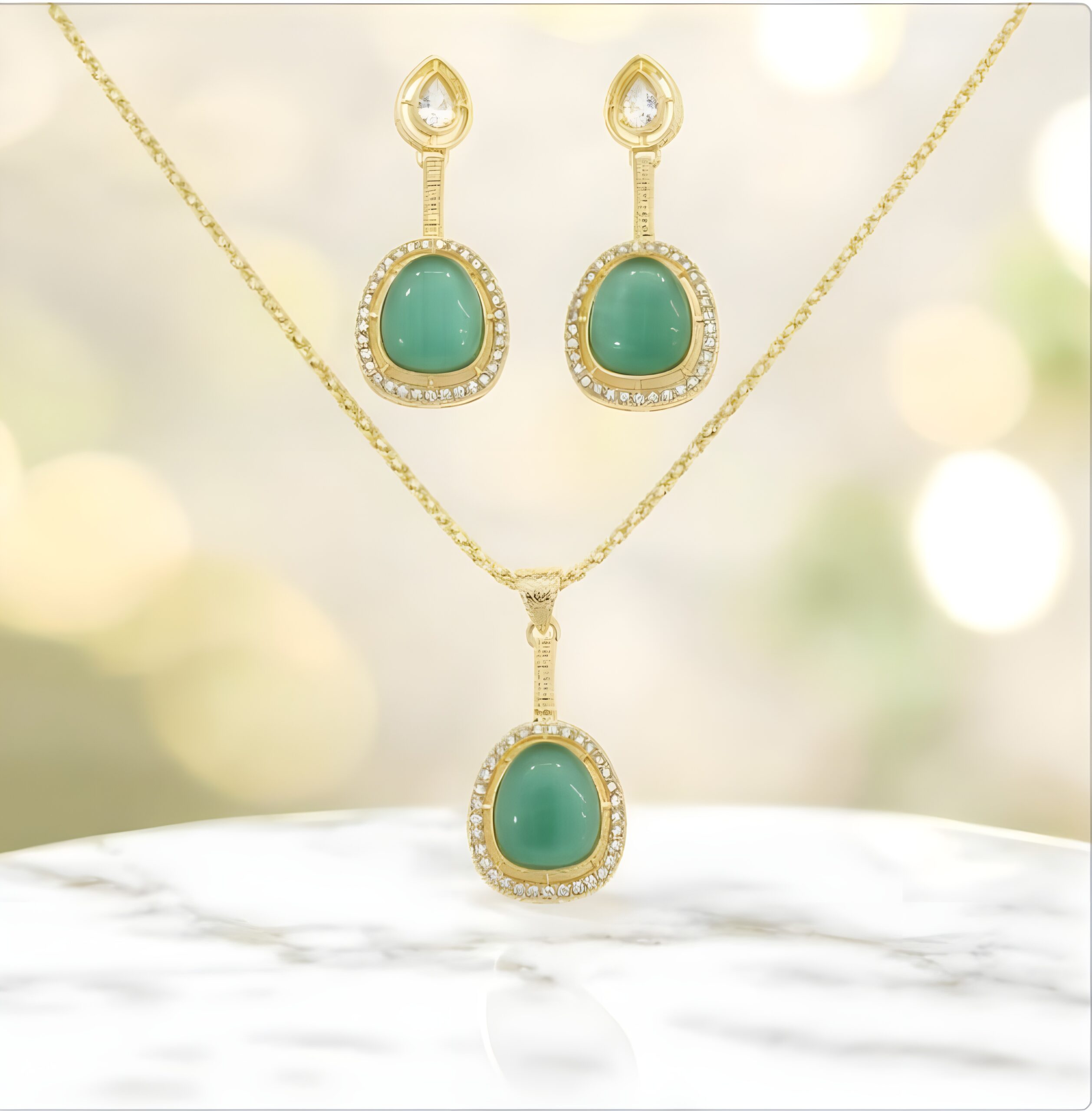 Experience the meticulous artistry and premium components that define the Jade Glow AD Pendant Set: