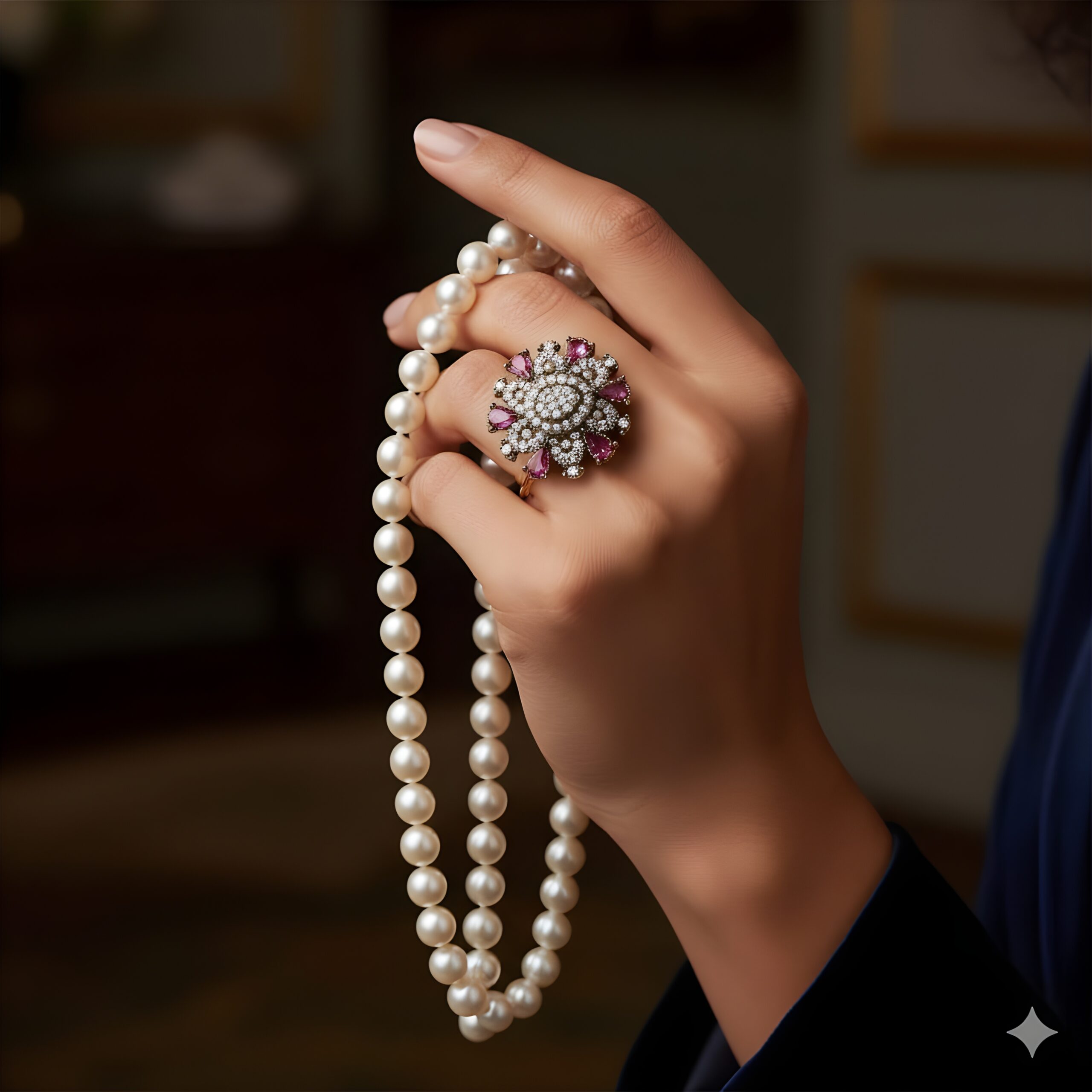 • Rose & AD Sparkle: Showcases a beautiful mosaic of rose-hued stones (pear-cut) nestled amongst halos and clusters of glittering American Diamonds (ADs).