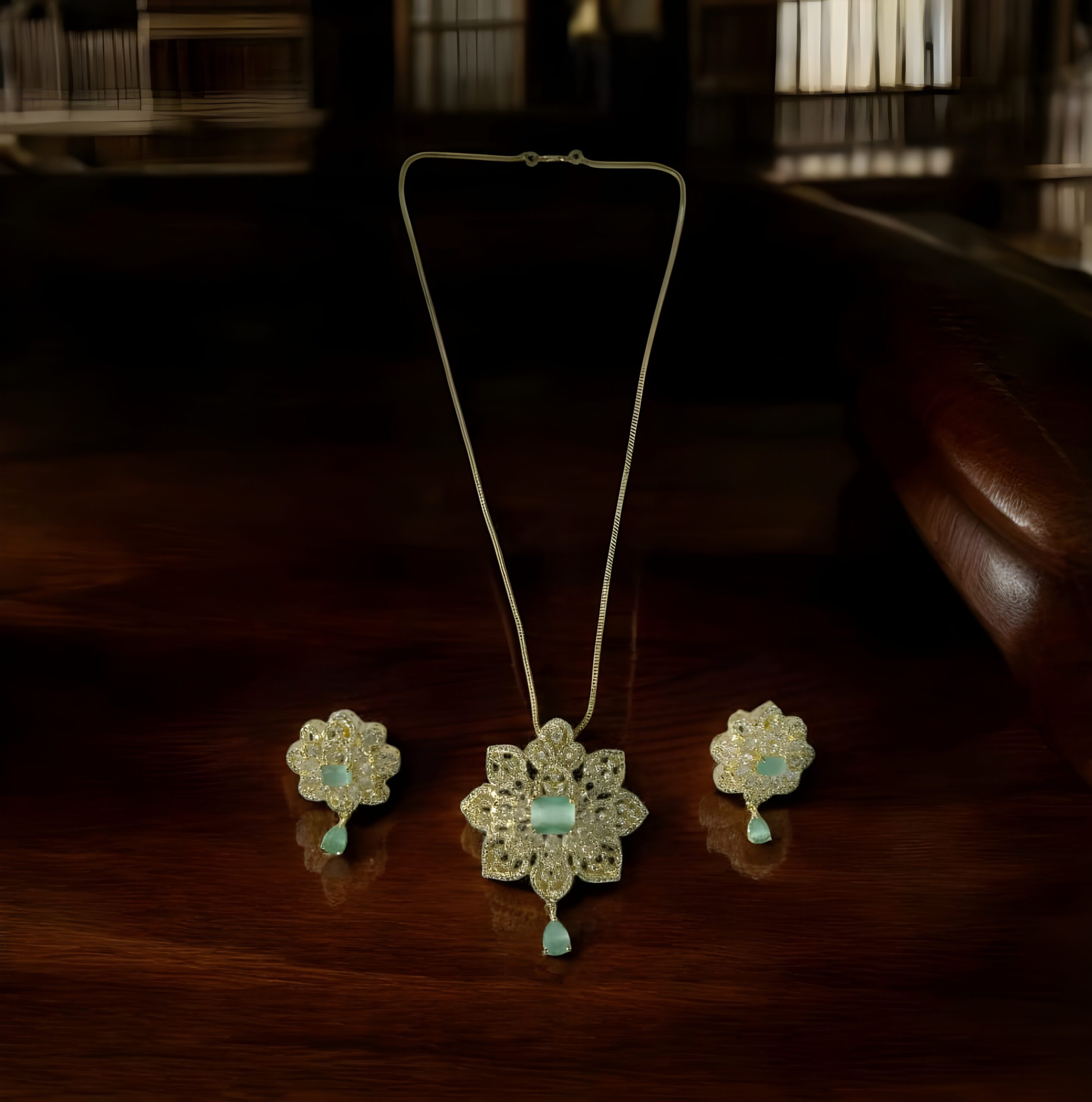 Experience the meticulous artistry and premium components that define the Mint Blossom AD Pendant Set: