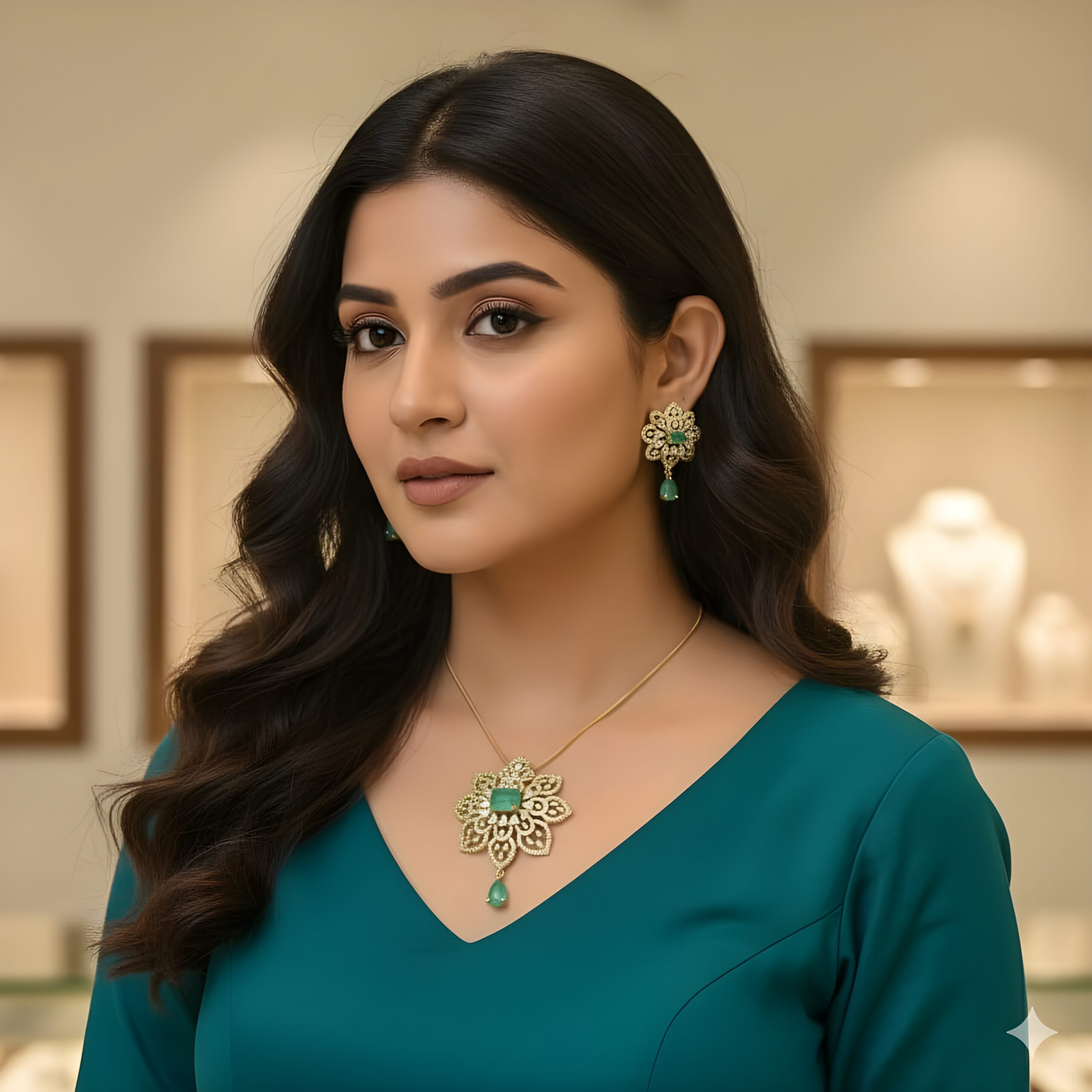 Discover the perfect fit and elegant proportions of your Kazaara Mint Blossom AD Pendant Set: