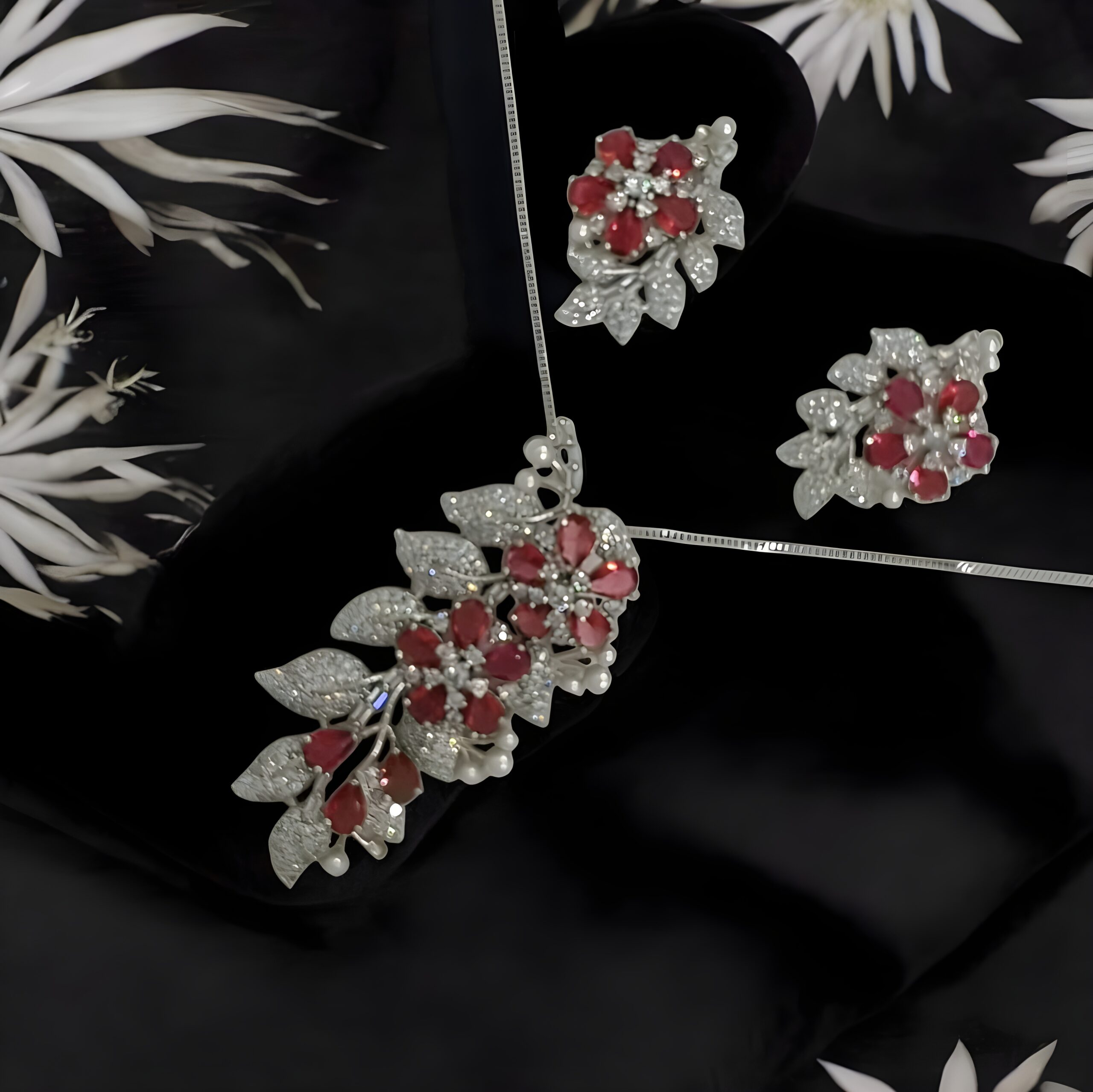 Kazaara “Red Flora” AD Pendant Set