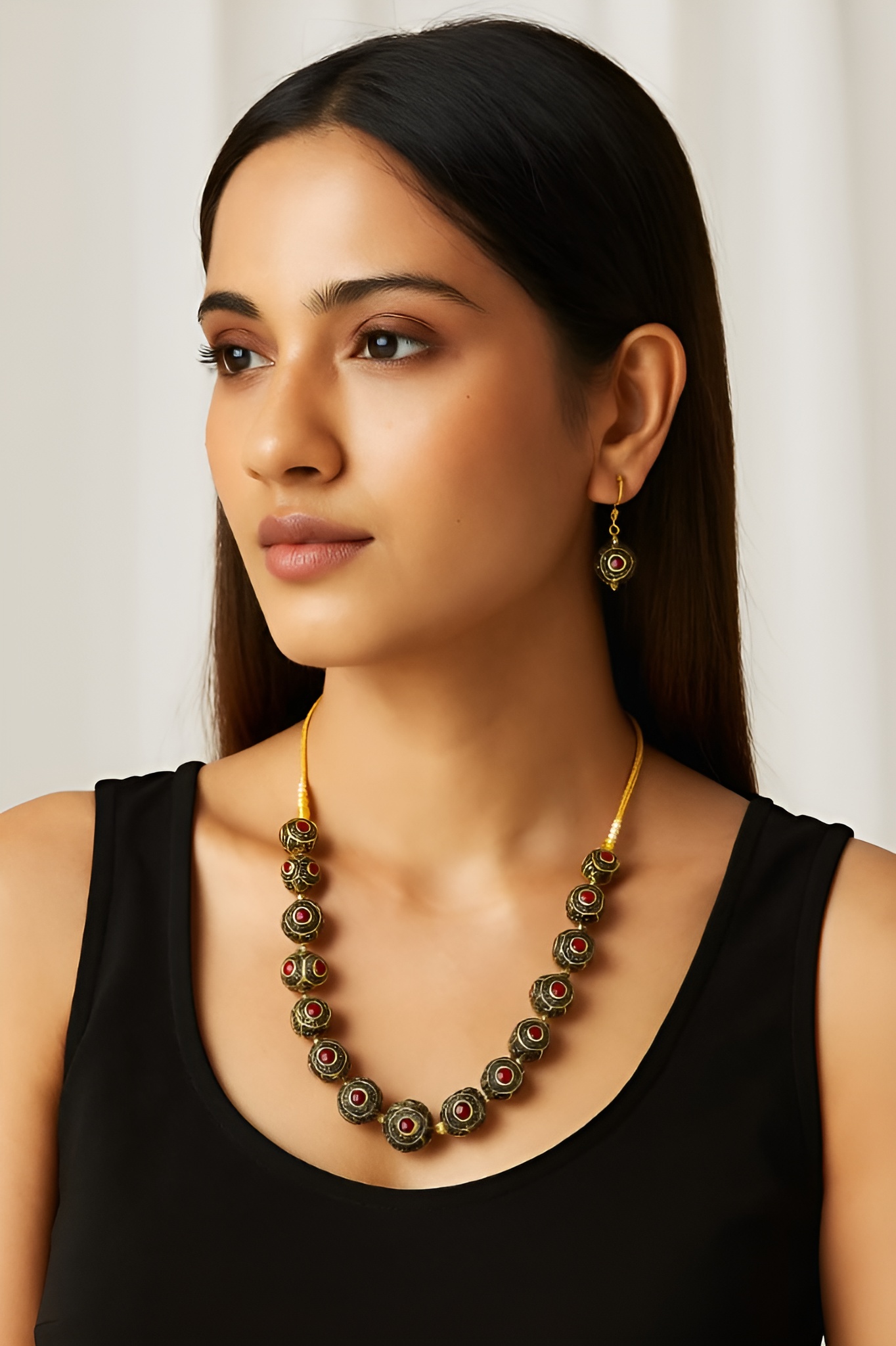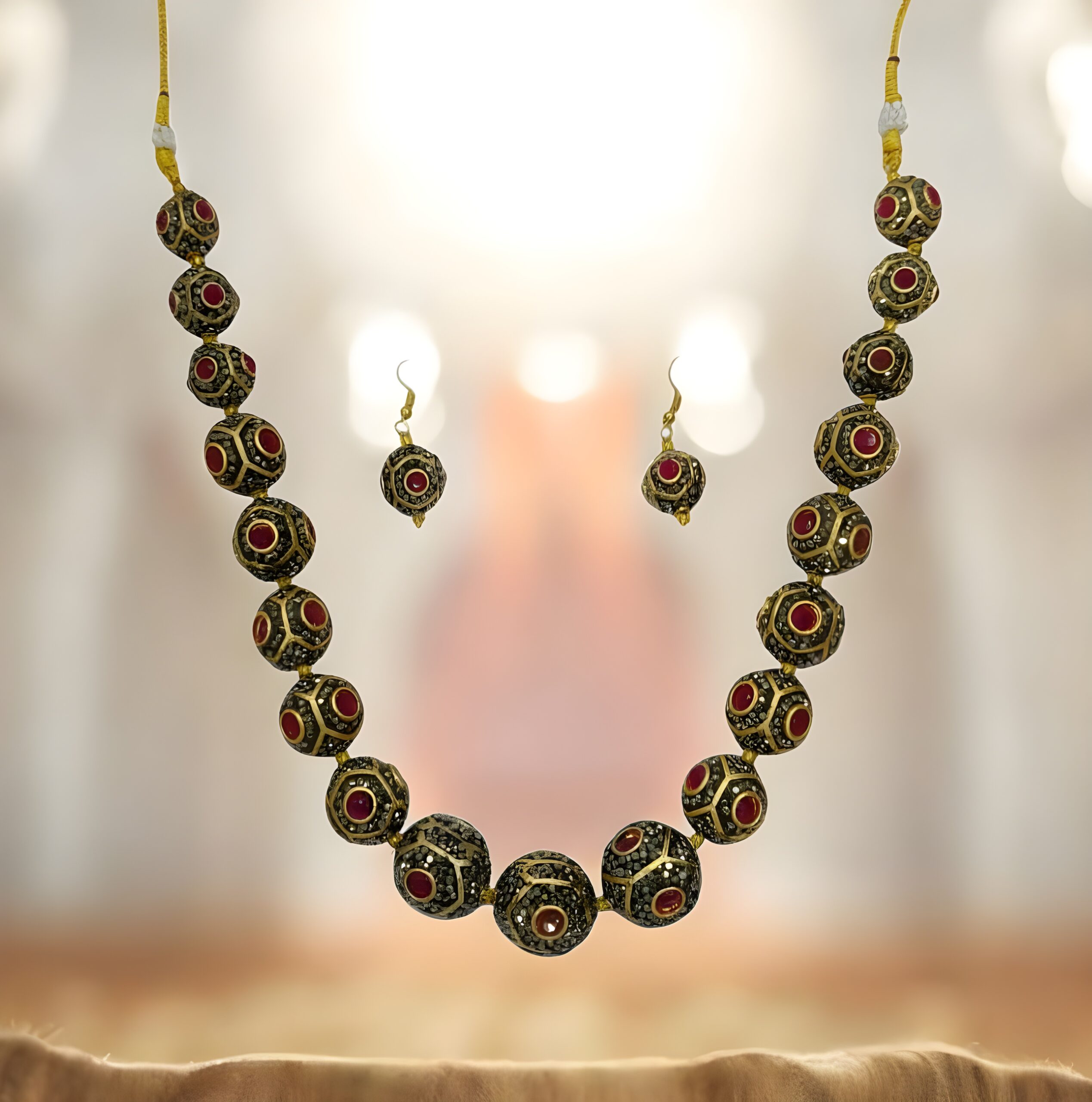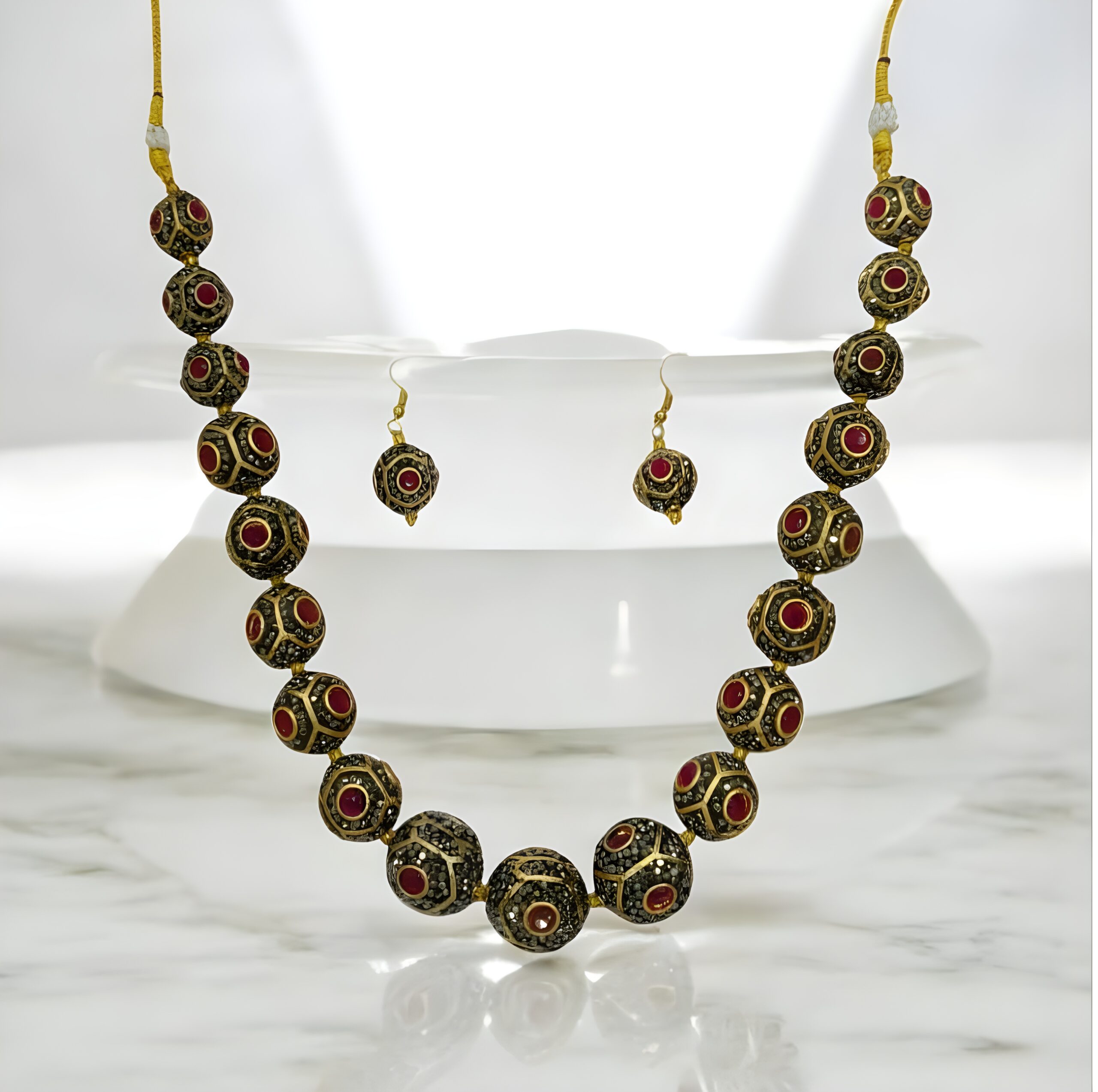Experience the meticulous artistry and premium components that define the Ruby Orb Necklace Set: