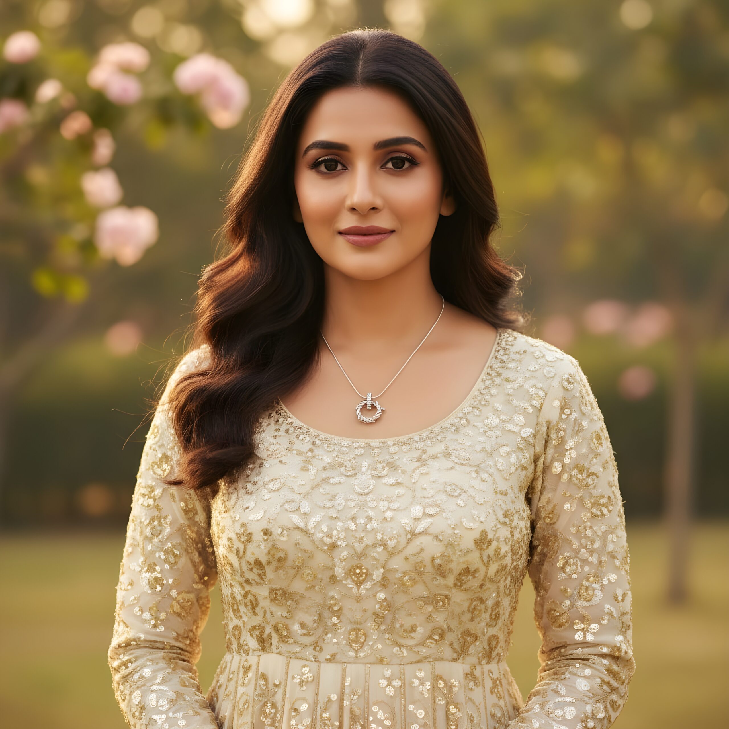 • Subtle Blush & Sparkle: The pendant beautifully combines the brilliance of clear American Diamonds (AD) with the delicate hue of very light pale pink stones, creating a sophisticated and gentle shimmer.