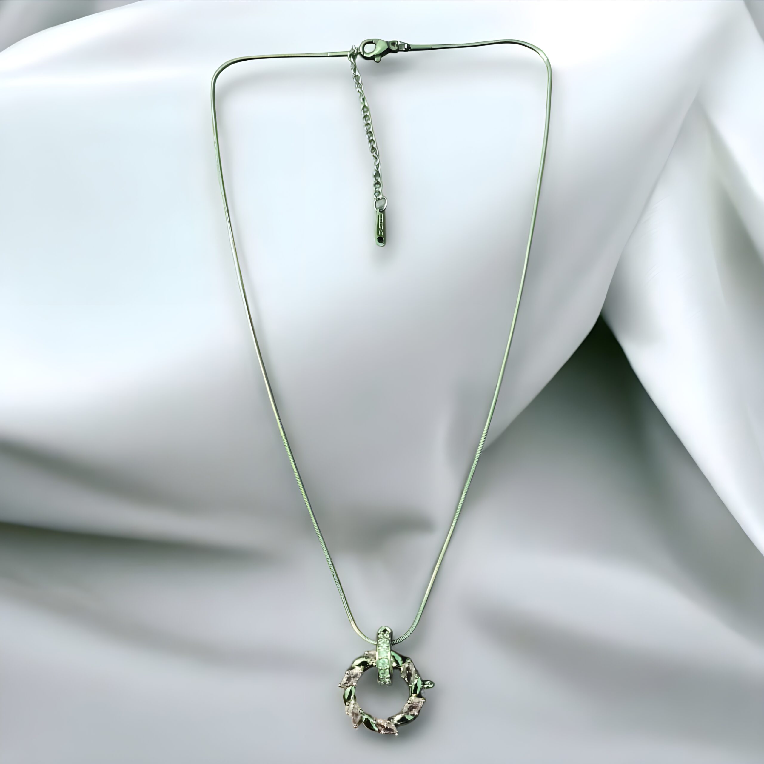 • Craftsmanship: Showcases precise micro-pavé settings for the AD stones and secure bezel settings for the pink stones within the sleek, circular stainless steel frame. The snake chain is finely polished for a smooth and comfortable feel.