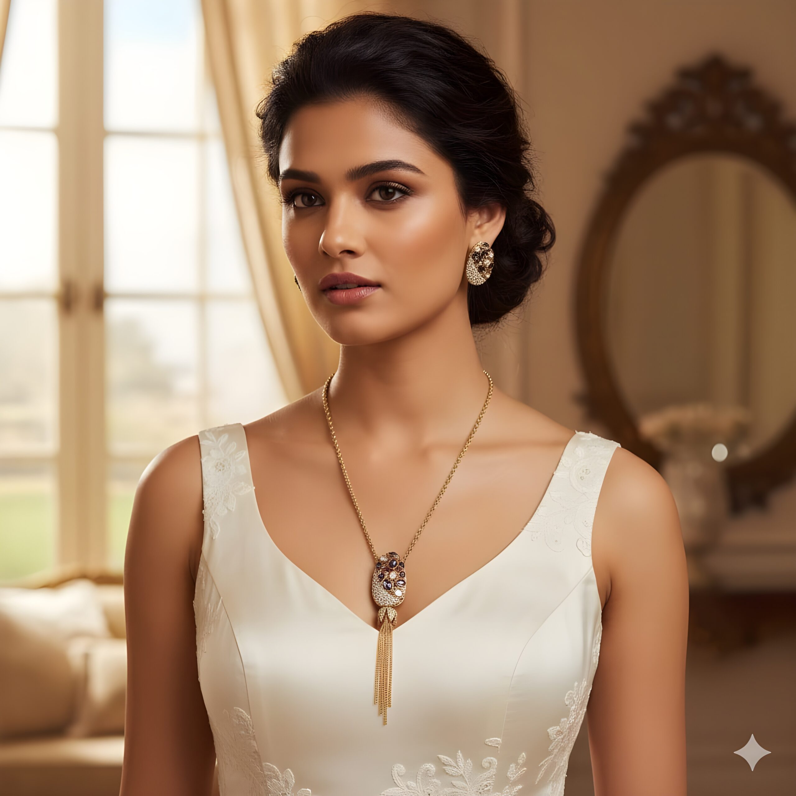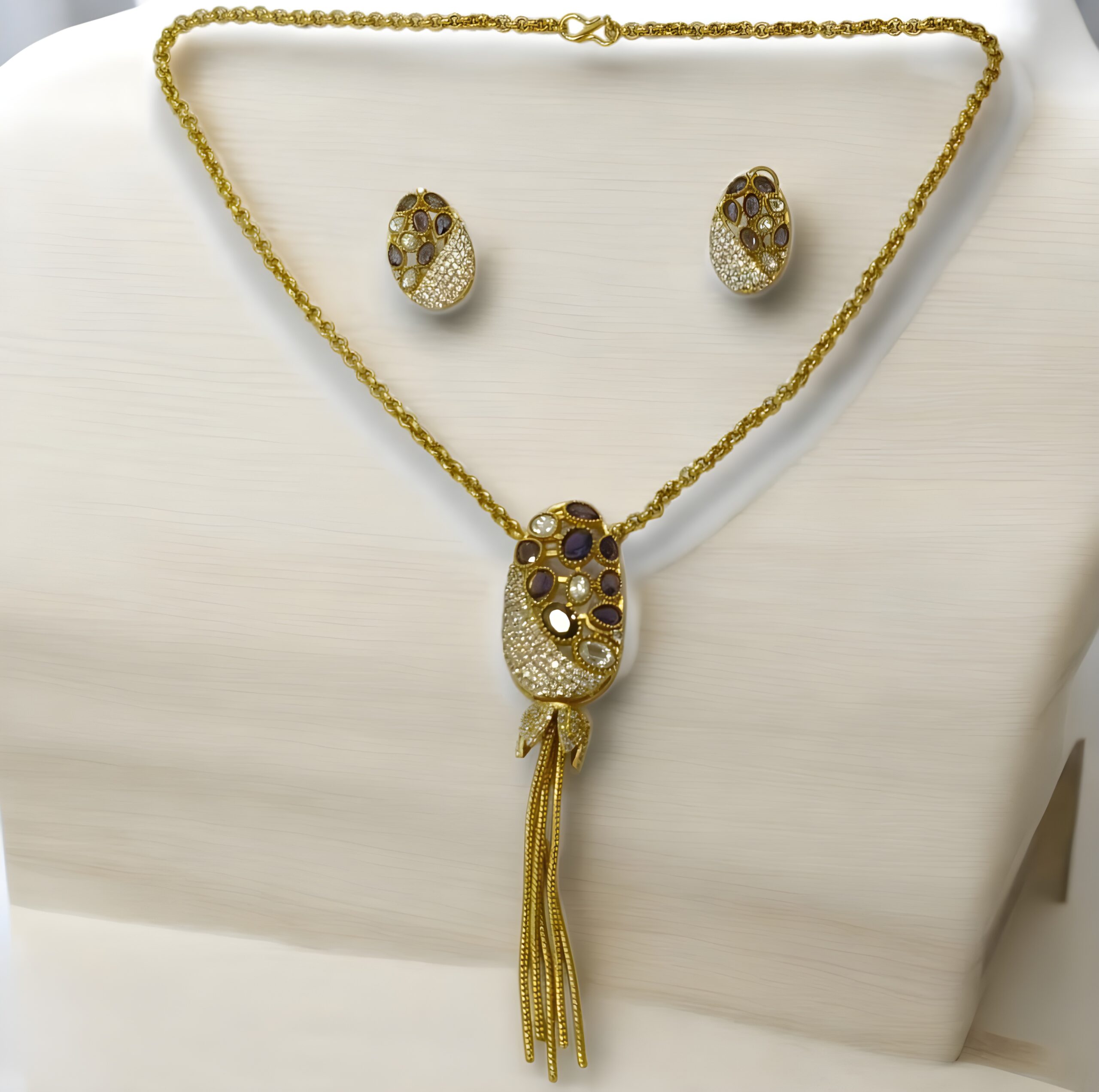 • Complete Ensemble with Matching Studs: Comes with perfectly matching oval stud earrings that mirror the pendant’s intricate stone work, offering a cohesive and stylish look.