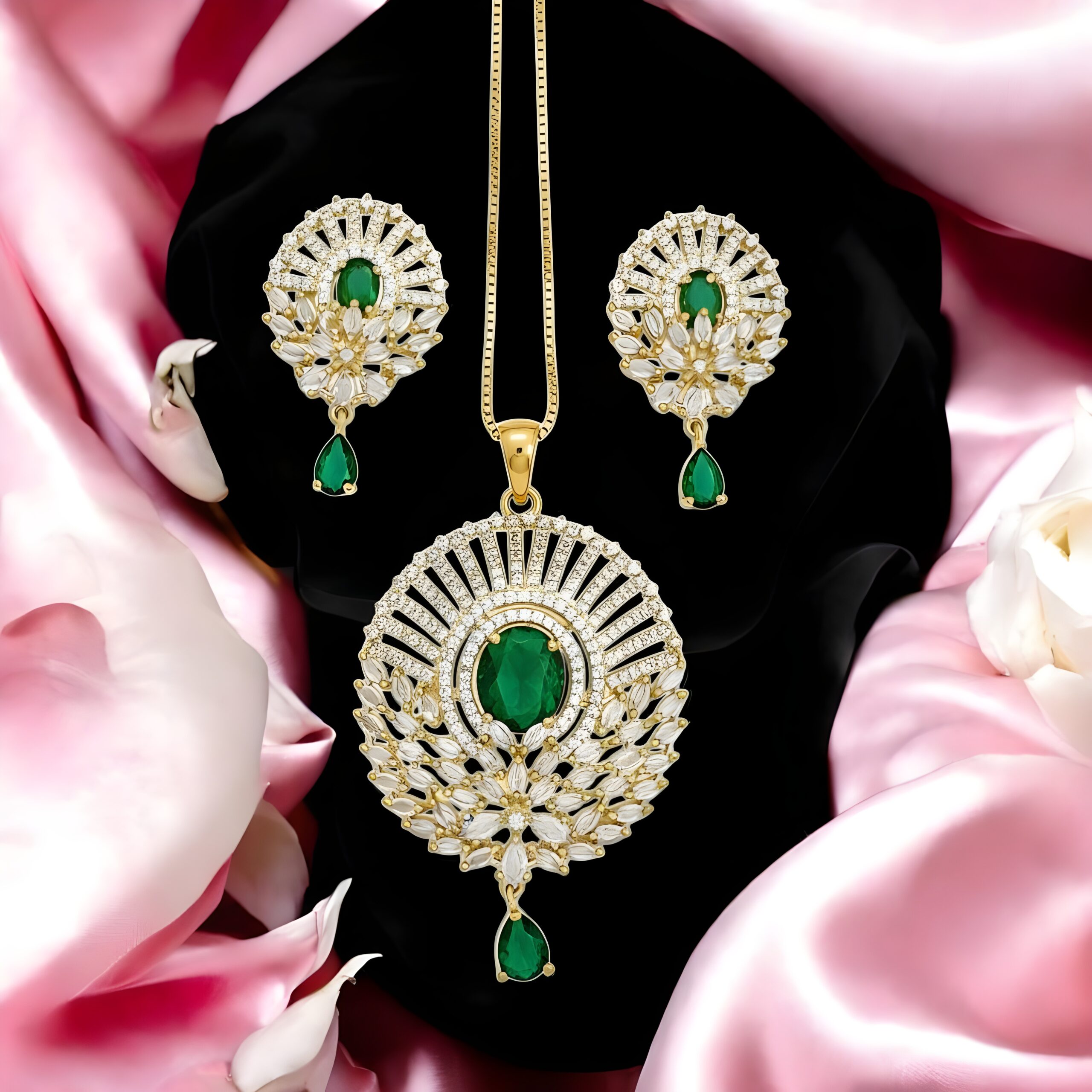 - Plating: Luxurious Gold-Tone Plating, providing a rich, warm, and enduring finish that beautifully enhances the vibrant green stones and the sparkle of the ADs.